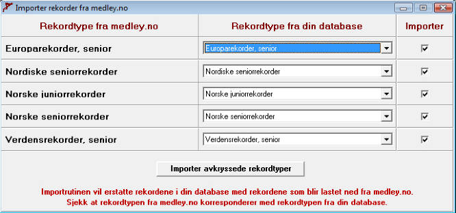 medley.no vil programmet selv matche hvilke rekordtyper som hører sammen. Hvis ikke må du selv sørge for at